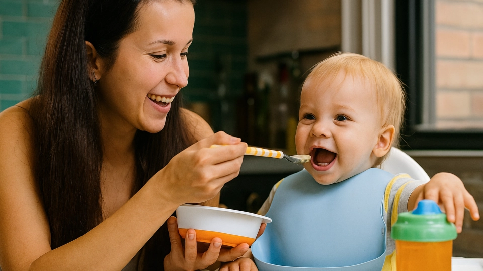 Los primeros alimentos deben tener una textura suave tipo puré. Verduras o frutas cocidas y bien trituradas o una papilla infantil de arroz con una consistencia similar a una crema ligera son ideales. Al principio, el bebé comerá alrededor de una o dos cucharaditas pequeñas; con el tiempo puedes aumentar las cantidades poco a poco. La paciencia es clave: cada niño necesita acostumbrarse gradualmente a nuevos sabores y texturas.