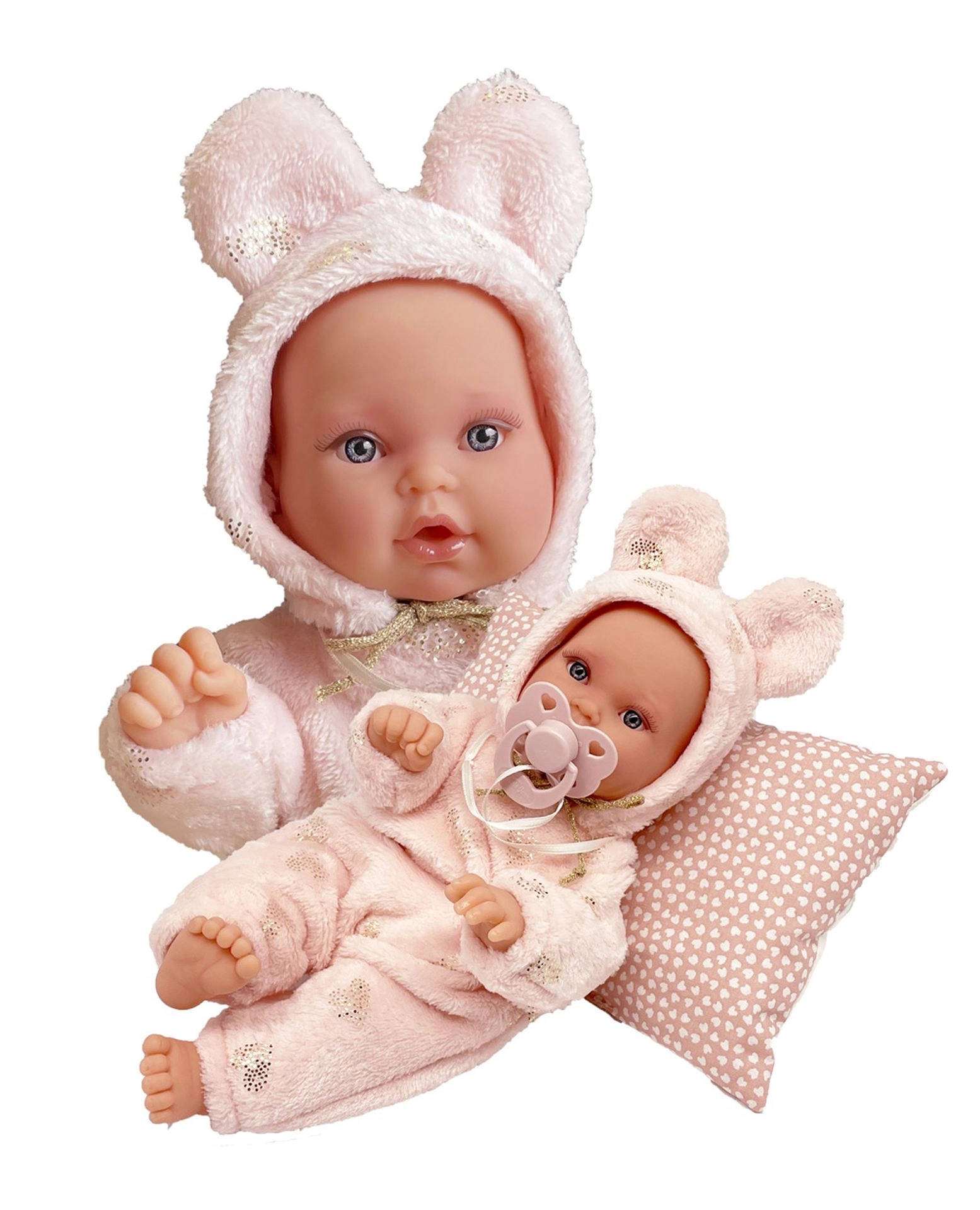 Elige tu muñeco bebé por tamaño (aprox. 28–50 cm), material y funciones. Algunos modelos incluyen ojos que parpadean, efectos de sonido (llanto, balbuceos), la posibilidad de beber y hacer pipí o chupete magnético; otros tienen extremidades articuladas y mantienen la postura como un bebé de verdad. Ropitas realistas, bodys, gorritos, mantitas y sets de inicio de cuidado completan el juego de cambiar pañales, dar de comer y dormir.