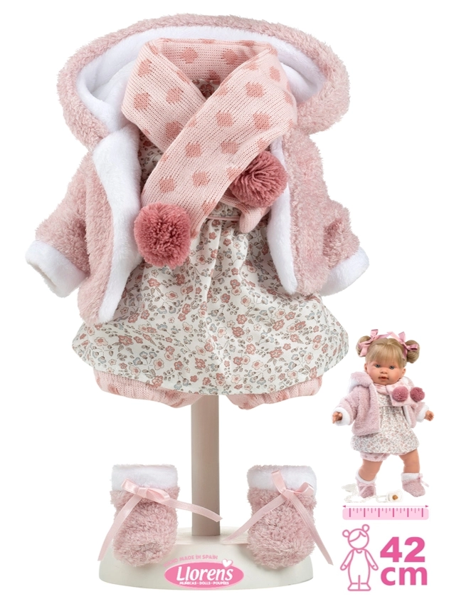 Encontrará muñecas Llorens de 38 cm y muñecas Llorens de 42 cm, bebés niña y niño, con cuerpo blandito o de vinilo completo. Cada muñeca incluye ropa con estilo, mantitas y accesorios para muñecas —biberones, chupetes e incluso pulseritas—, a menudo presentados en una elegante caja de regalo.
