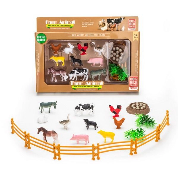 Las figuras de granja son excelentes juguetes educativos: los niños aprenden a reconocer las especies de animales de granja, sus crías y sus sonidos, a entender la vida en la granja y los principios de la agricultura. El juego de roles con el granjero, alimentar a los animales con heno, mover fardos, abrir las puertas del establo y construir cercas desarrolla la motricidad fina, la coordinación y el vocabulario. Favorece la imaginación y el aprendizaje, estimula la narración de historias y entrena el conteo o la clasificación de los animalitos.