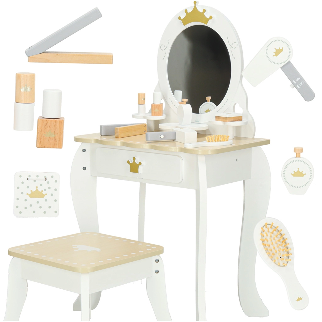En la oferta encontrarás juguetes cosméticos de madera para los más pequeños (paletas, pintalabios y polveras sin colores reales) y también cosmética infantil a base de agua para los mayores: coloretes, brillos, sombras y purpurina para el maquillaje, así como esmaltes de uñas y accesorios para manicura y pedicura infantil. Un set de cosmética para niños potencia la creatividad, la imaginación, la motricidad fina y la autoexpresión, además de enseñar las reglas del cuidado de la piel y la higiene mediante el juego. Elige el set de esteticista según la edad: maquillaje infantil, maletín de maquillista, neceser o tocador/mesa de maquillaje con espejo. Los prácticos accesorios como espejos de plástico de seguridad, brochas de maquillaje, paletas y pegatinas para uñas garantizan diversión duradera y un almacenamiento fácil. La categoría Esteticista y maquillista es la elección ideal para un pequeño salón de belleza en casa.