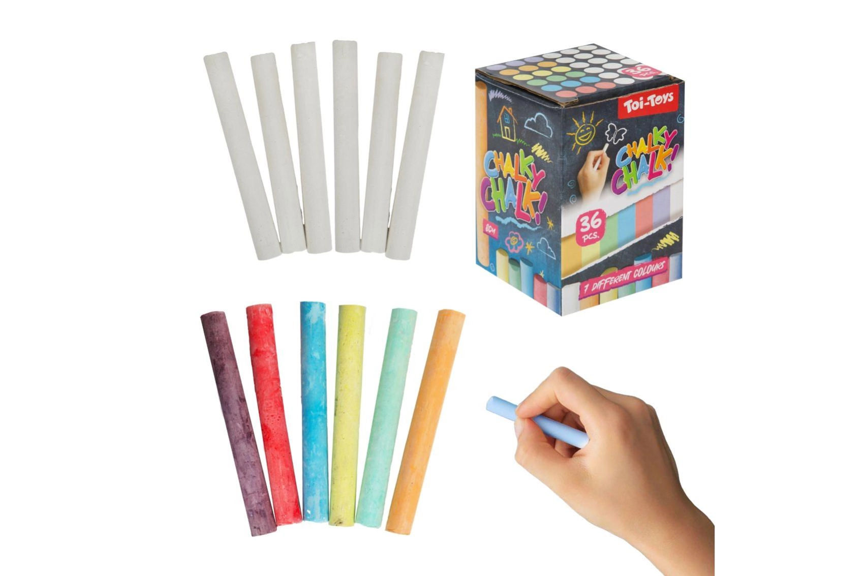 Llena de color la pizarra y la acera: tizas que entretienen y enseñan. En la oferta encontrarás tizas escolares para pizarra (tiza blanca y tizas de colores), tizas infantiles para guardería y tizas para acera sobre asfalto o cemento. En formatos redondos y cuadrados, clásicas y jumbo, ofrecen colores intensos, trazo suave, alta cobertura y borrado fácil con esponja.
