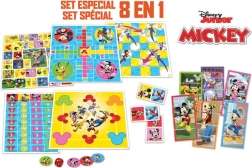 El SuperPack 8 en 1 ofrece una variada mezcla de clásicos que entretienen a varias generaciones. En la caja encontrarás versiones de juegos como Parchís (Člověče, nezlob se), Serpientes y escaleras, La oca, Dominó, Caracoles, Carreras de caballos, Tres en raya y Personajes. Cada juego está diseñado gráficamente con los personajes favoritos de MICKEY Y SUS AMIGOS, por lo que motiva a los niños a concentrarse y colaborar.