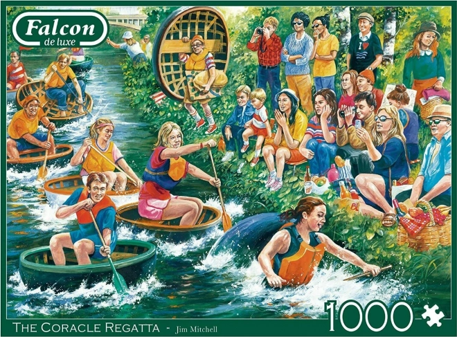 Descubra la belleza de las tradicionales embarcaciones coracle en el cautivador motivo «Regata de coracles» en este rompecabezas FALCON de 1000 piezas. Ideal para amantes de los desafíos, ofrece corte preciso, colores vibrantes y un tamaño montado de aprox. 68 × 49 cm. Disfrute de un entretenimiento relajante y cree una imagen decorativa con motivo detallado, acabado de calidad y formato agradable.