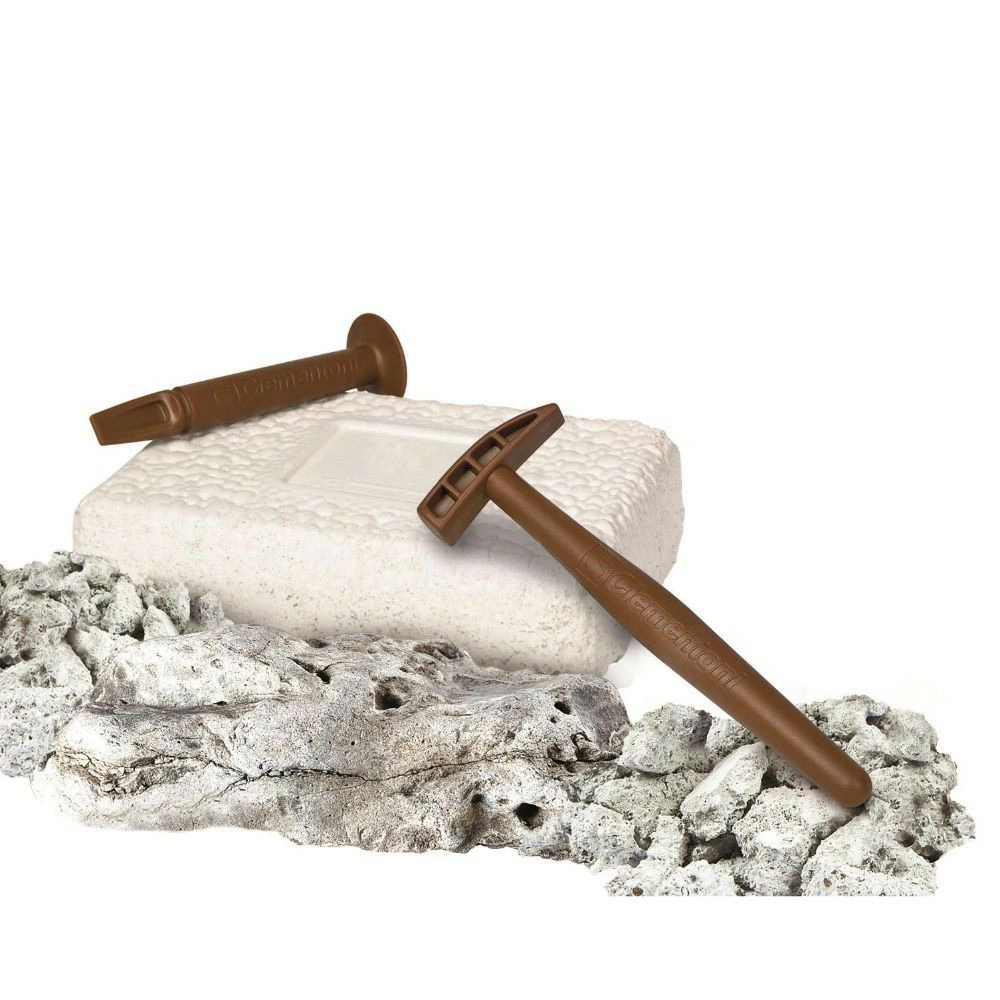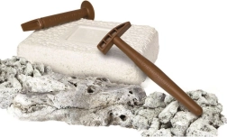 - Martillo, cincel, bloque de tierra con fósil de piraña, manual ilustrado (CZ/SK/PL/HU)