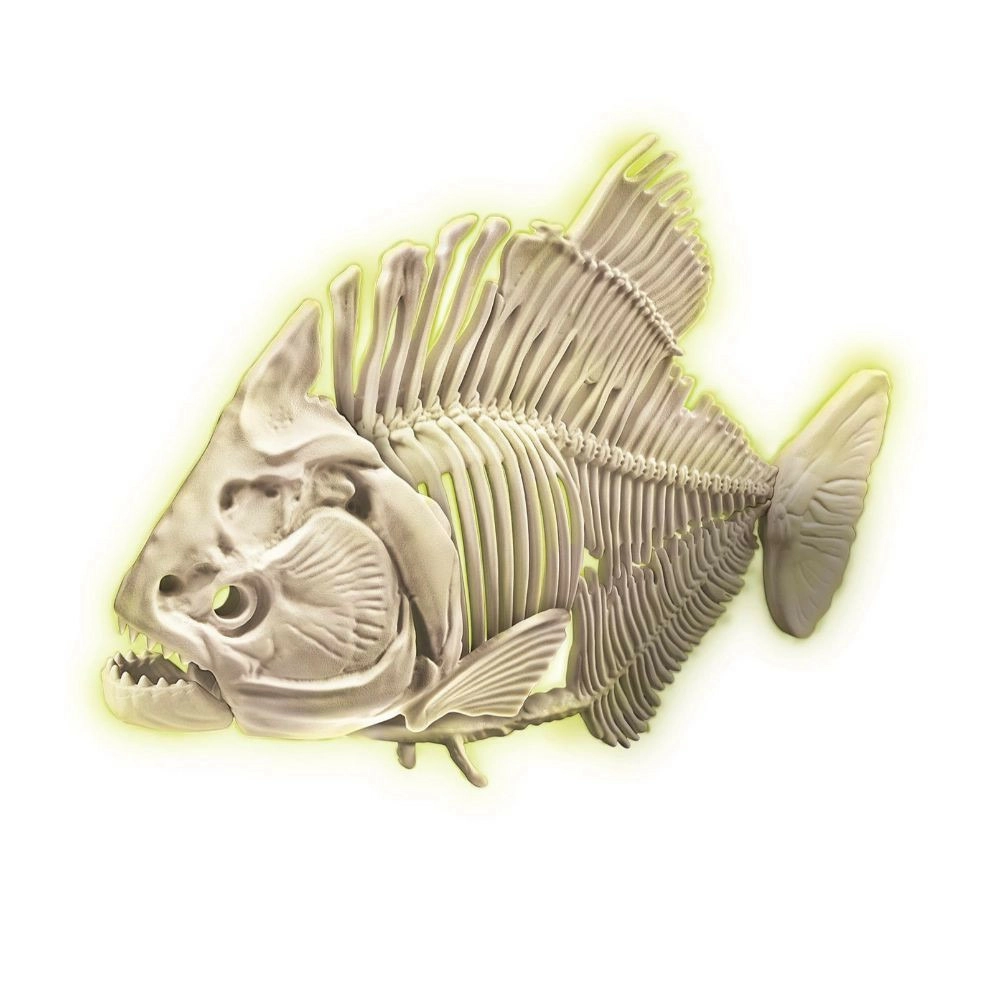 Explora el mundo de la paleontología paso a paso. Con martillo y cincel, trabaja con cuidado el bloque de tierra y descubre los huesos con los que montarás un esqueleto de piraña realista. Gracias al material fluorescente especial, el esqueleto brilla en la oscuridad tras exponerse a la luz, aportando una atmósfera única al descubrimiento.