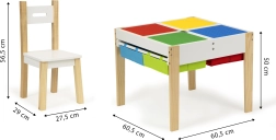 Crea un rincón creativo para los niños con el set ECOTOYS, que combina mesa de juegos y espacio de almacenamiento en uno. Las robustas patas de madera de pino y el resistente tablero de MDF garantizan estabilidad y durabilidad. Gracias a su limpio diseño escandinavo, el conjunto encaja perfectamente en el dormitorio infantil, la sala de juegos o incluso una sala de espera.