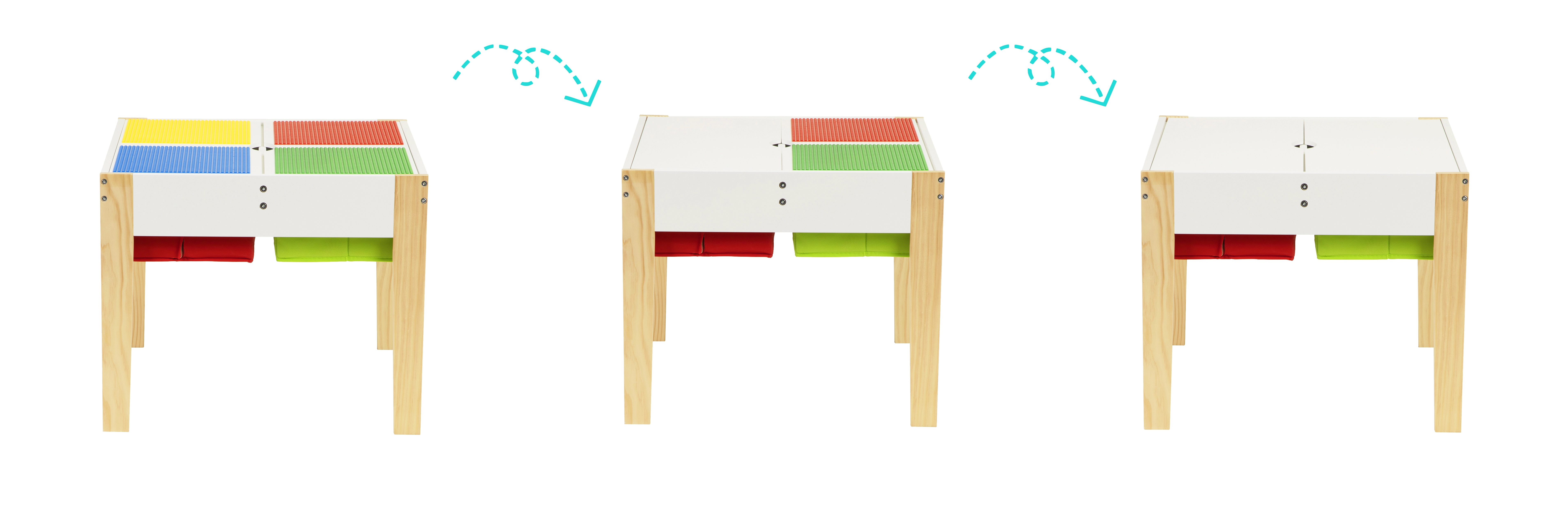Las dos partes extraíbles del tablero ofrecen una superficie lisa para pintar y bases de colores adecuadas para bloques. Podrás adaptar fácilmente la mesa a diferentes juegos al mismo tiempo.
