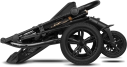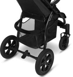 Las grandes ruedas sin mantenimiento con banda de rodadura resistente y suspensión completa superan con suavidad adoquines y baches. Para mayor control al conducir, cuenta con bloqueo de ruedas delanteras y freno central de pie. Gracias a la regulación del manillar en 9 niveles, puedes adaptarlo a tu estatura. La seguridad está garantizada por el arnés de 5 puntos con almohadillas suaves y elementos reflectantes en la capota, la barra y el reposapiés. El cochecito cumple la norma EN 1888.