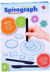 Este set creativo de espirógrafo permite a los niños crear fascinantes patrones circulares y florales con reglas transparentes y ruedas dentadas. Con un simple giro de las ruedas con el rotulador insertado surgen composiciones geométricas complejas que parecen profesionales sin habilidades avanzadas.