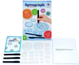 - Ruedas y reglas dentadas del espirógrafo, 3 rotuladores, papeles A4, guía ilustrada