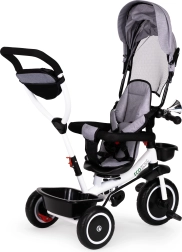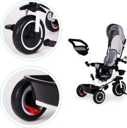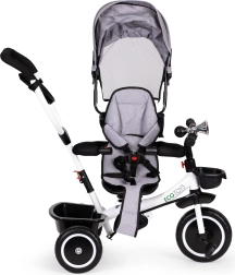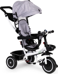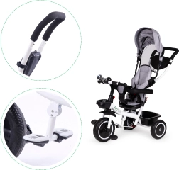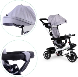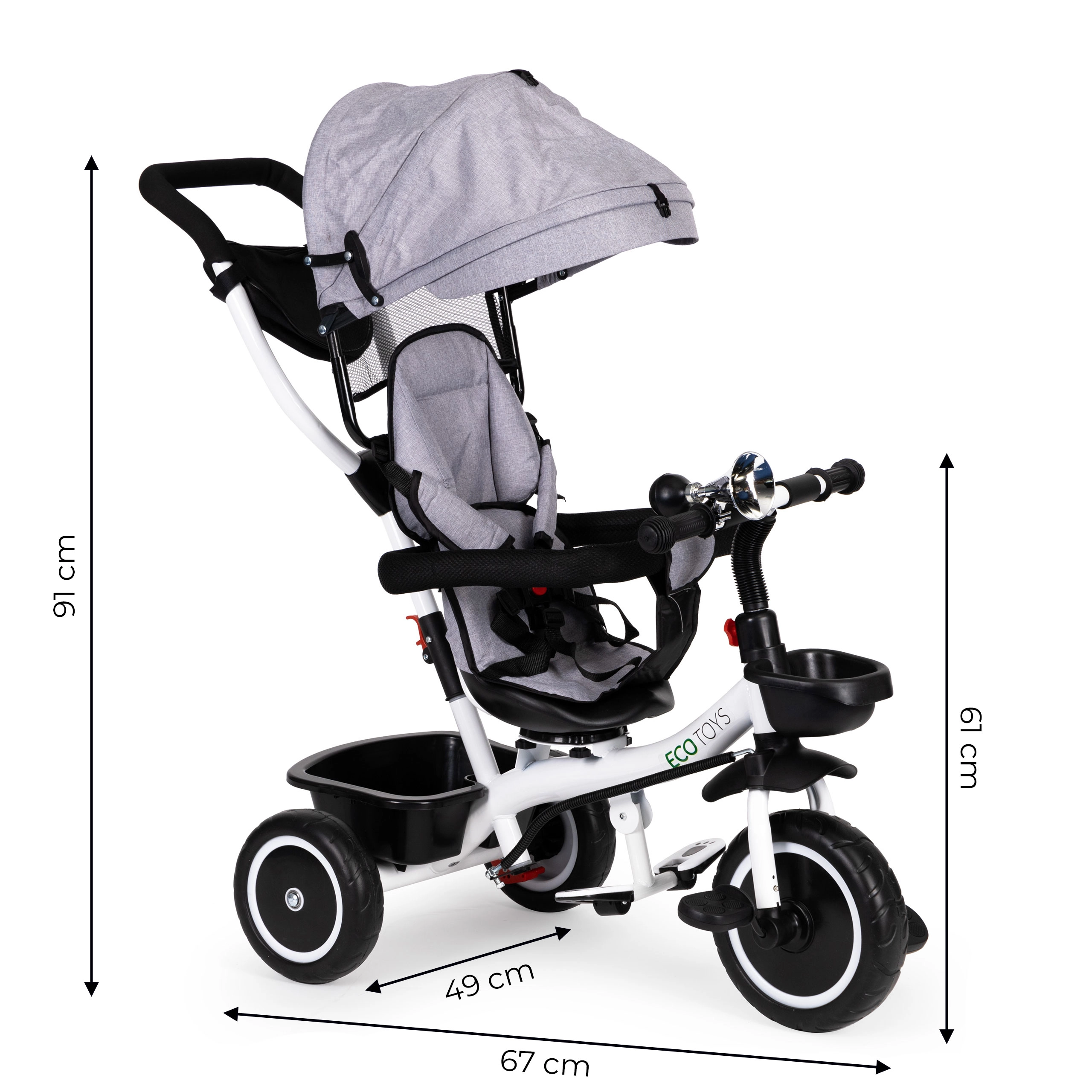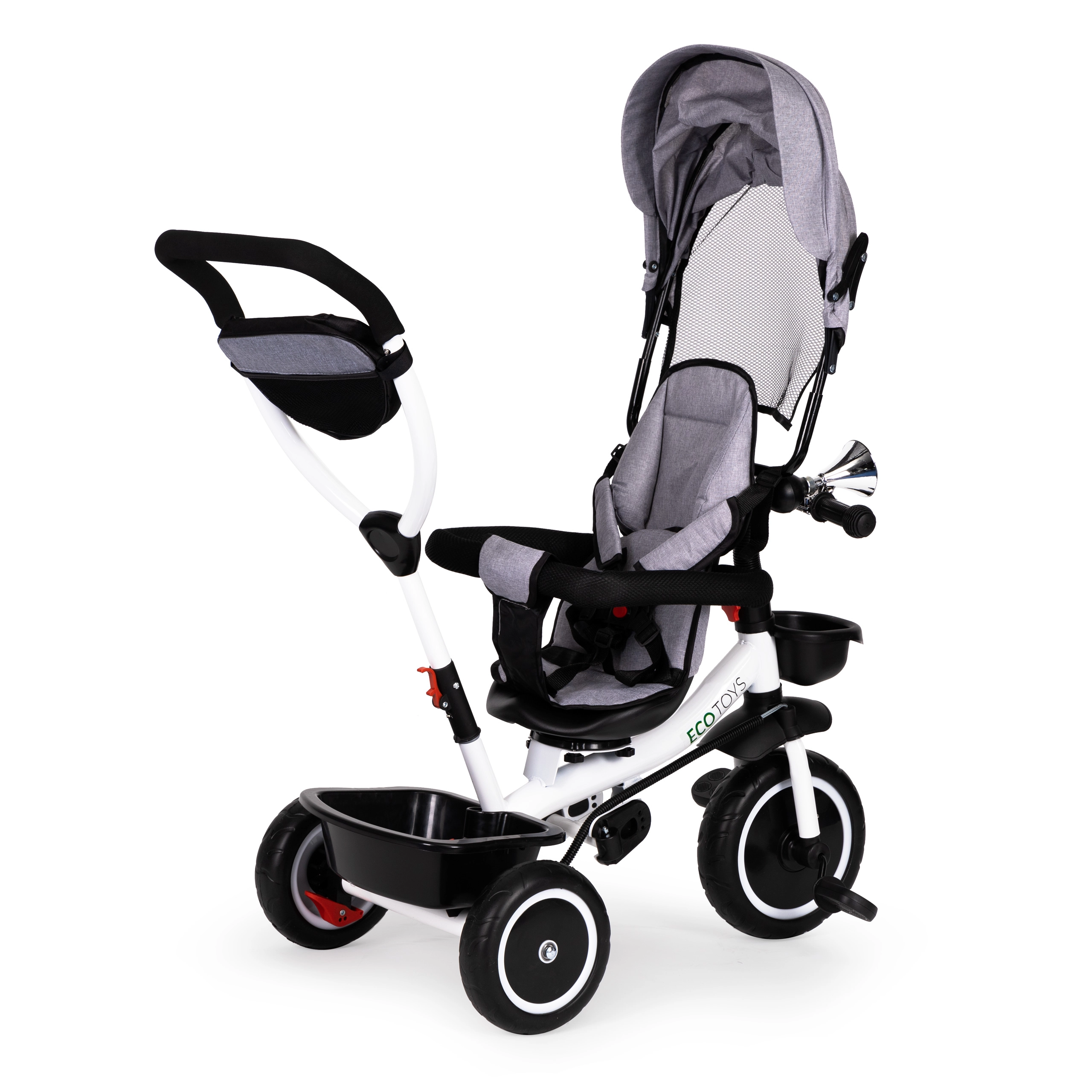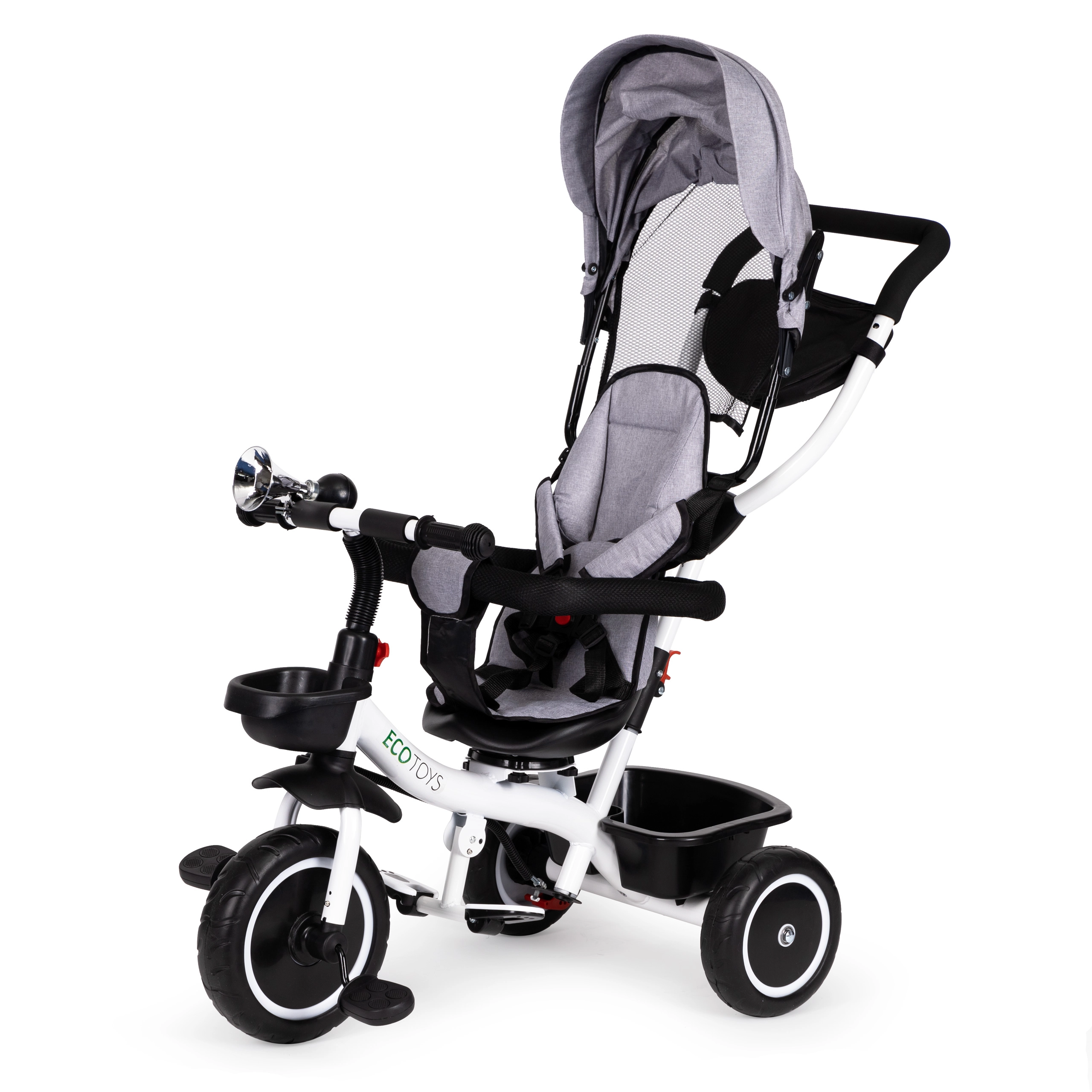 El triciclo ECOTOYS es el compañero perfecto para tu hijo desde los 6 meses. El marco de acero seguro con arnés de seguridad de 5 puntos garantiza la estabilidad, mientras que la capota desmontable protege del sol y la lluvia. El asiento giratorio puede orientarse hacia el padre o hacia adelante, lo que brinda flexibilidad y confianza durante los paseos.