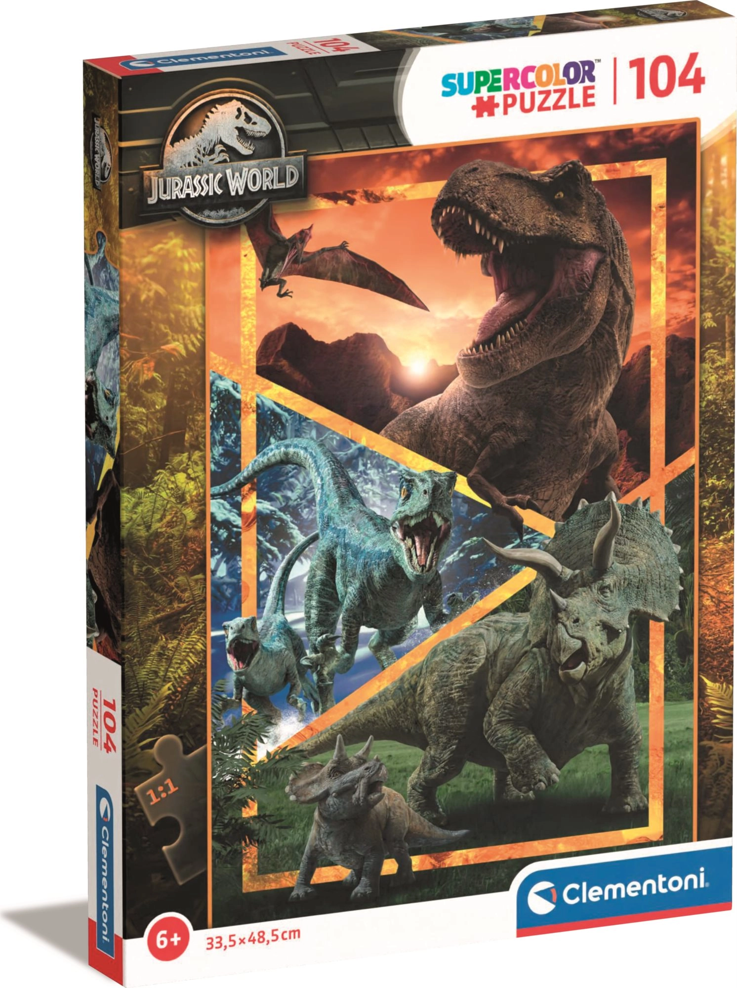 Descubre los divertidos rompecabezas infantiles de la edición SuperColor, que traen el motivo de Mundo Jurásico y 104 piezas precisas. Los puzzles fomentan la destreza manual, la concentración y la capacidad de observación. Gracias a los materiales de calidad y a la técnica de impresión exclusiva, disfrutarás de colores nítidos, vivos y duraderamente brillantes.