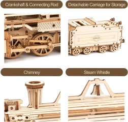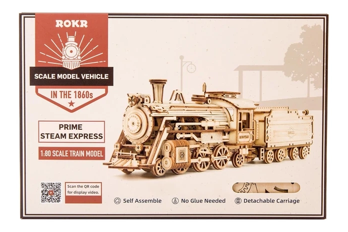 Disfruta de la diversión y la creatividad con el modelo 3D de madera Prime Steam Express. Este tren histórico data de 1860 y forma parte de la serie ROBOTIME ROKR Model Vehicles Series. Todas las piezas están cuidadosamente cortadas con láser a partir de contrachapado de tilo de 2 mm de grosor. No se necesita pegamento para el montaje y el modelo cuenta con detalles realistas, como silbato de vapor, ruedas de eje y ténder desmontable.