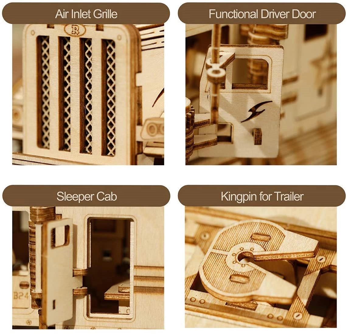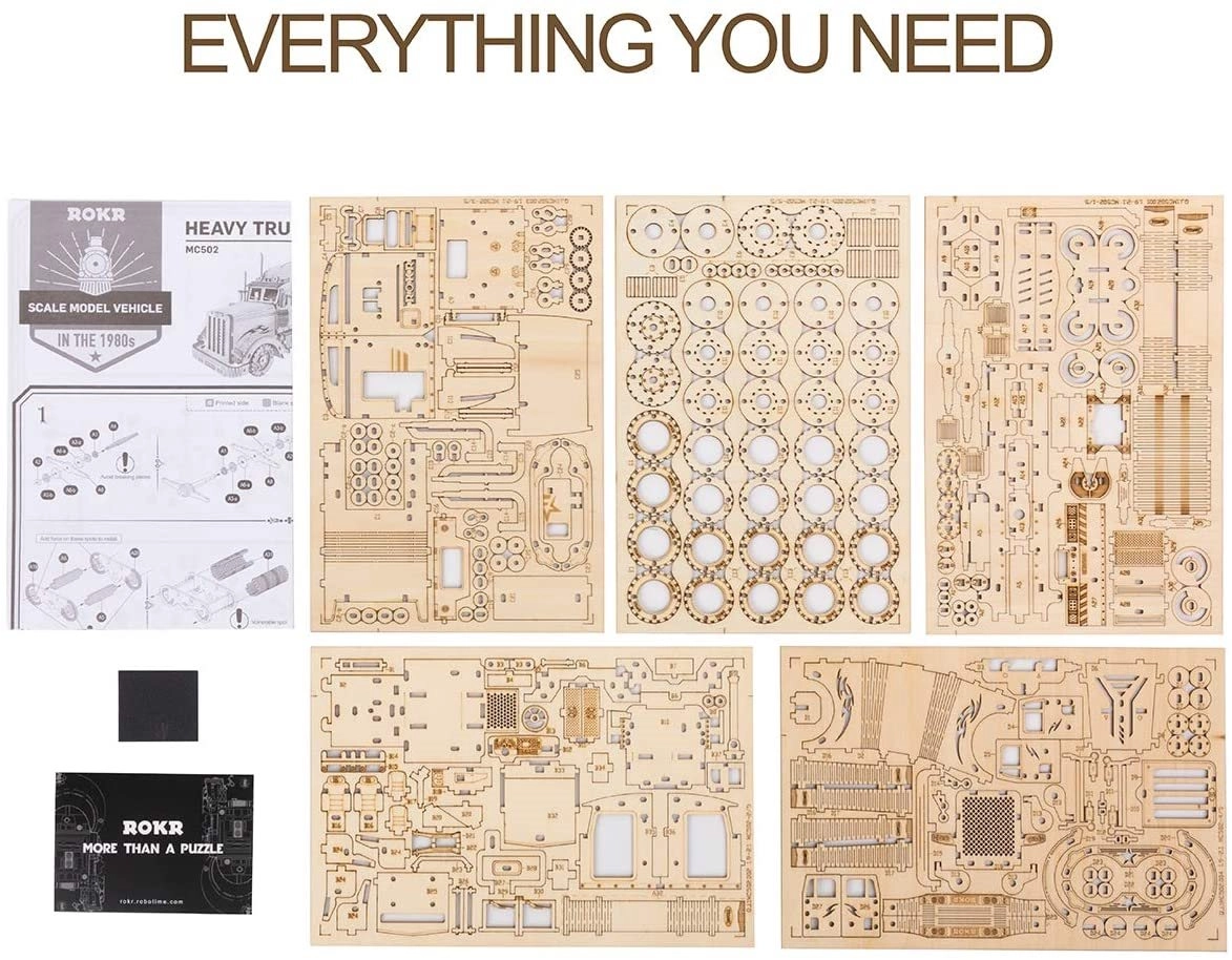 Este modelo de camión, detallado y minucioso, es un excelente ejemplo de fabricación artesanal de precisión. Hecho con piezas cortadas con láser de contrachapado de tilo de 2 mm, que se desprenden fácilmente de la base. Su propósito es desarrollar tu pensamiento técnico, imaginación y motricidad fina.