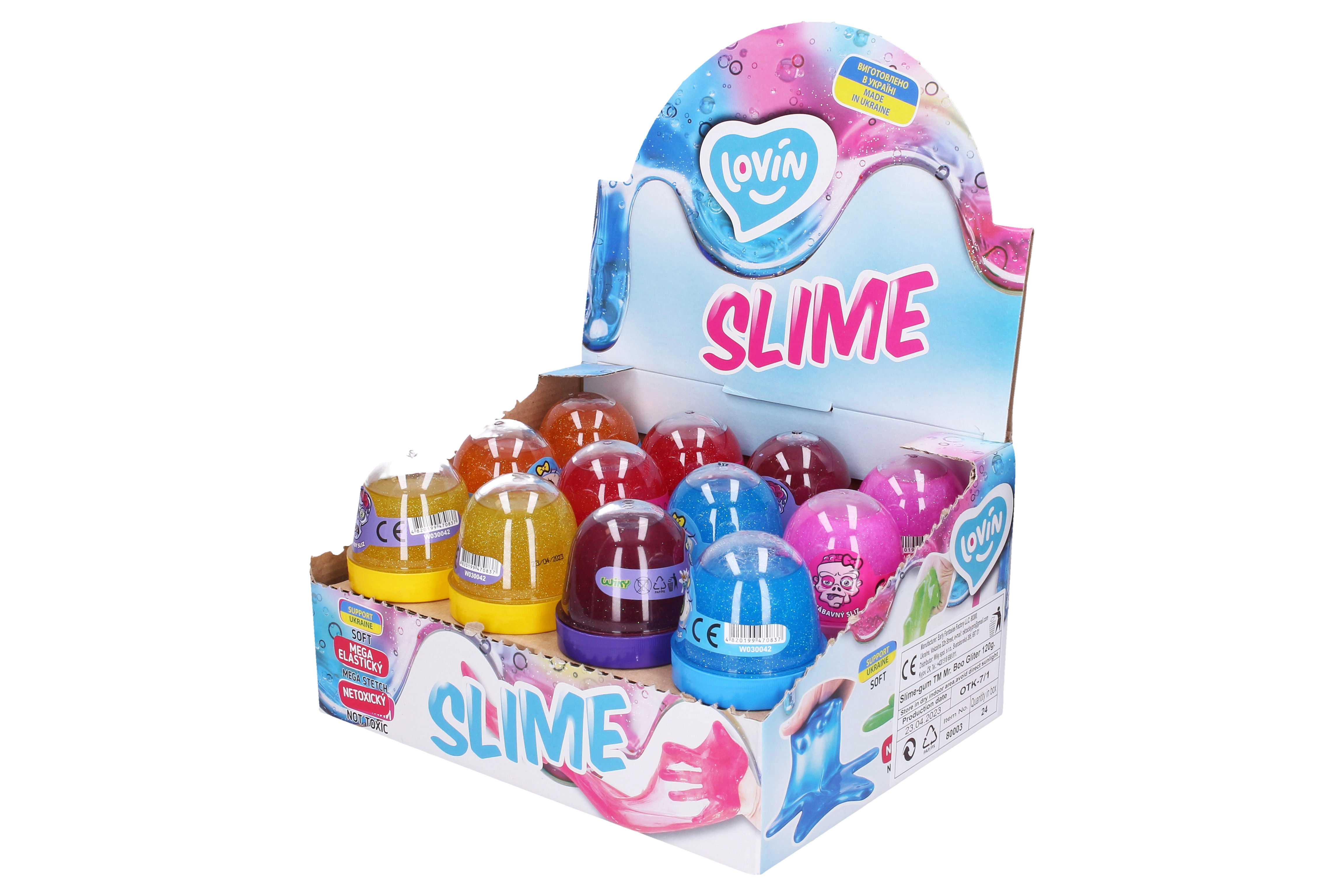 Disfruta horas de diversión con la baba elástica moldeable con purpurina Lovin, disponible en seis colores brillantes.