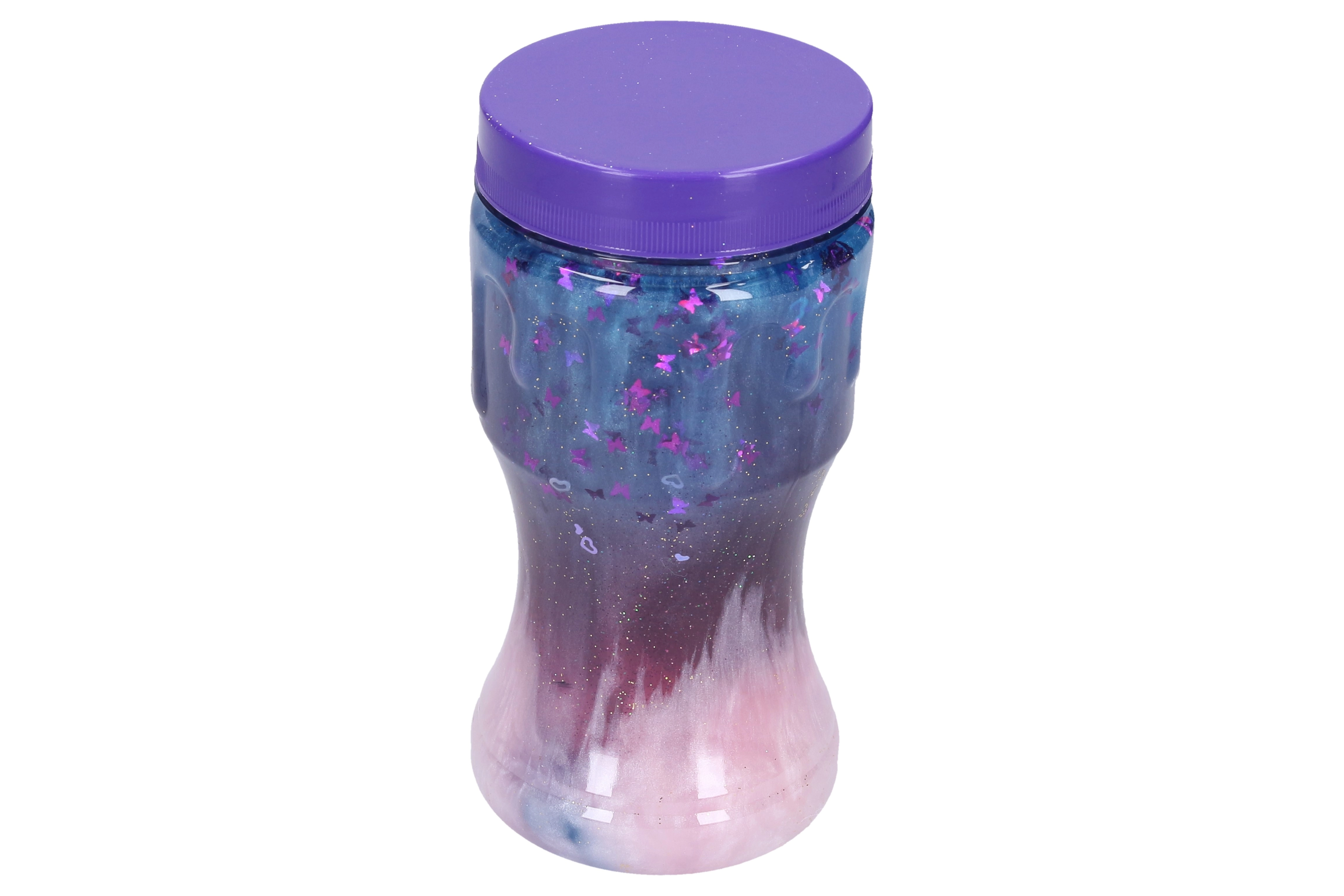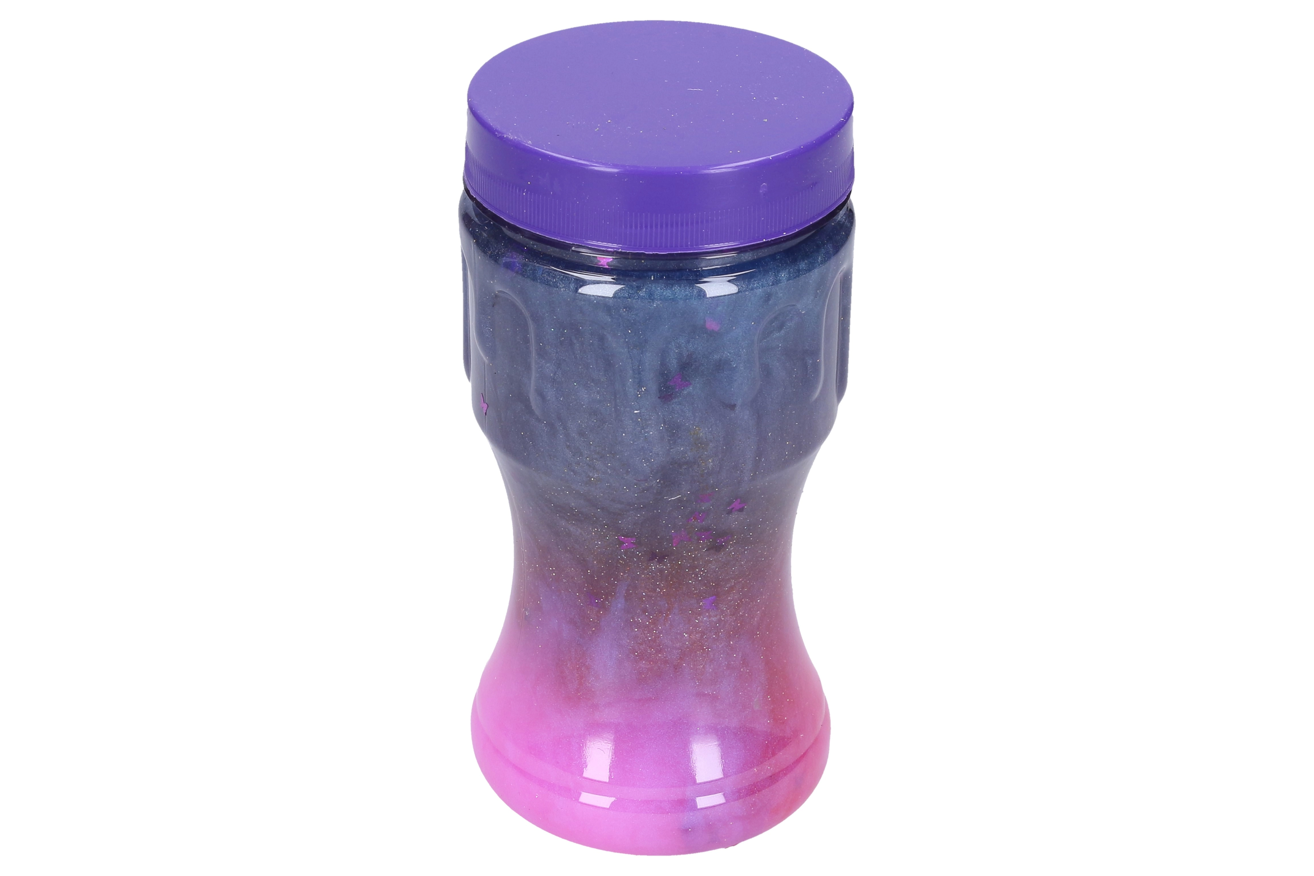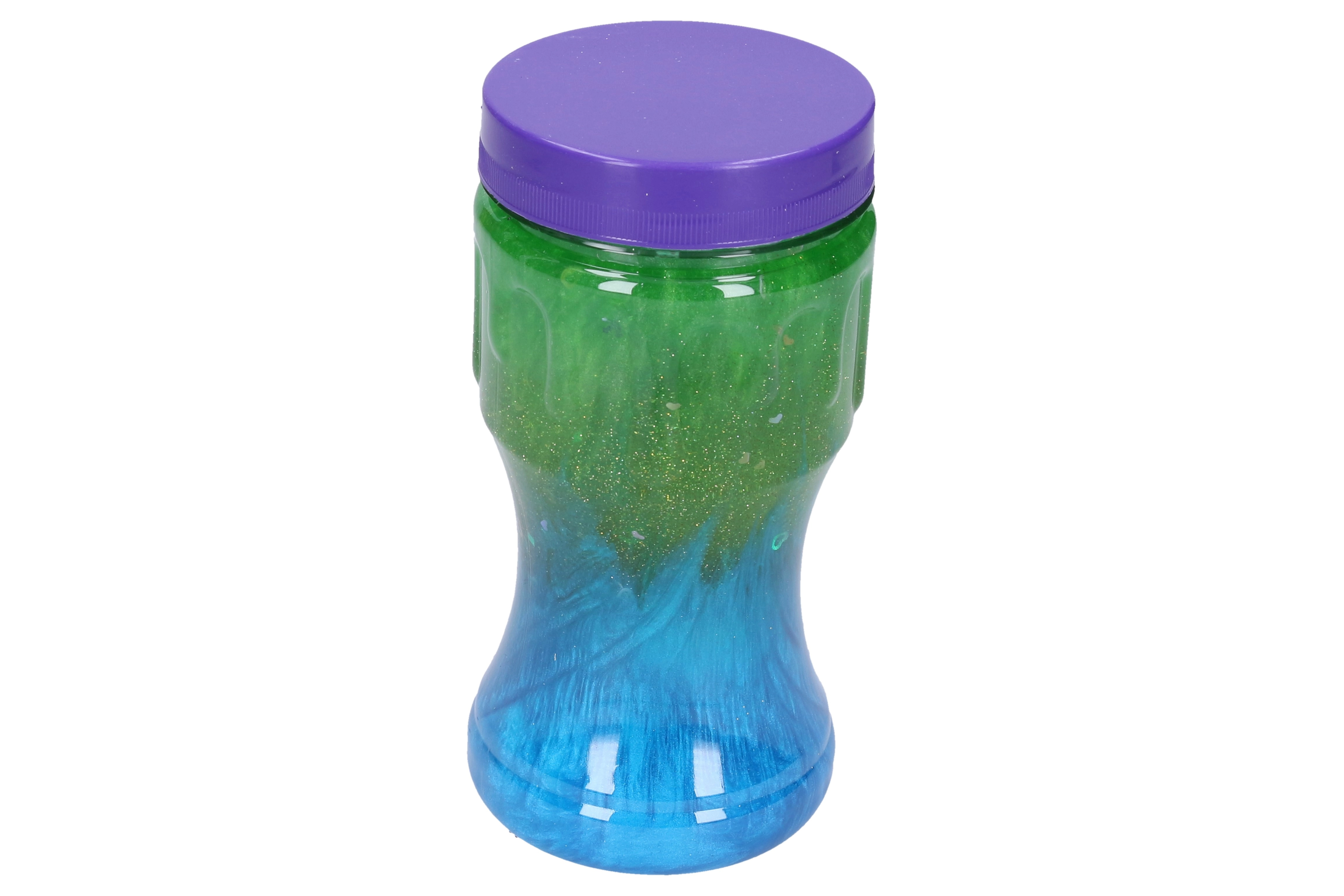 El práctico envase transparente con tapa de rosca mantiene el slime fresco y limpio, mientras que la forma ergonómica se adapta bien a la mano. La boca ancha facilita sacar el slime y guardarlo de nuevo en el envase.