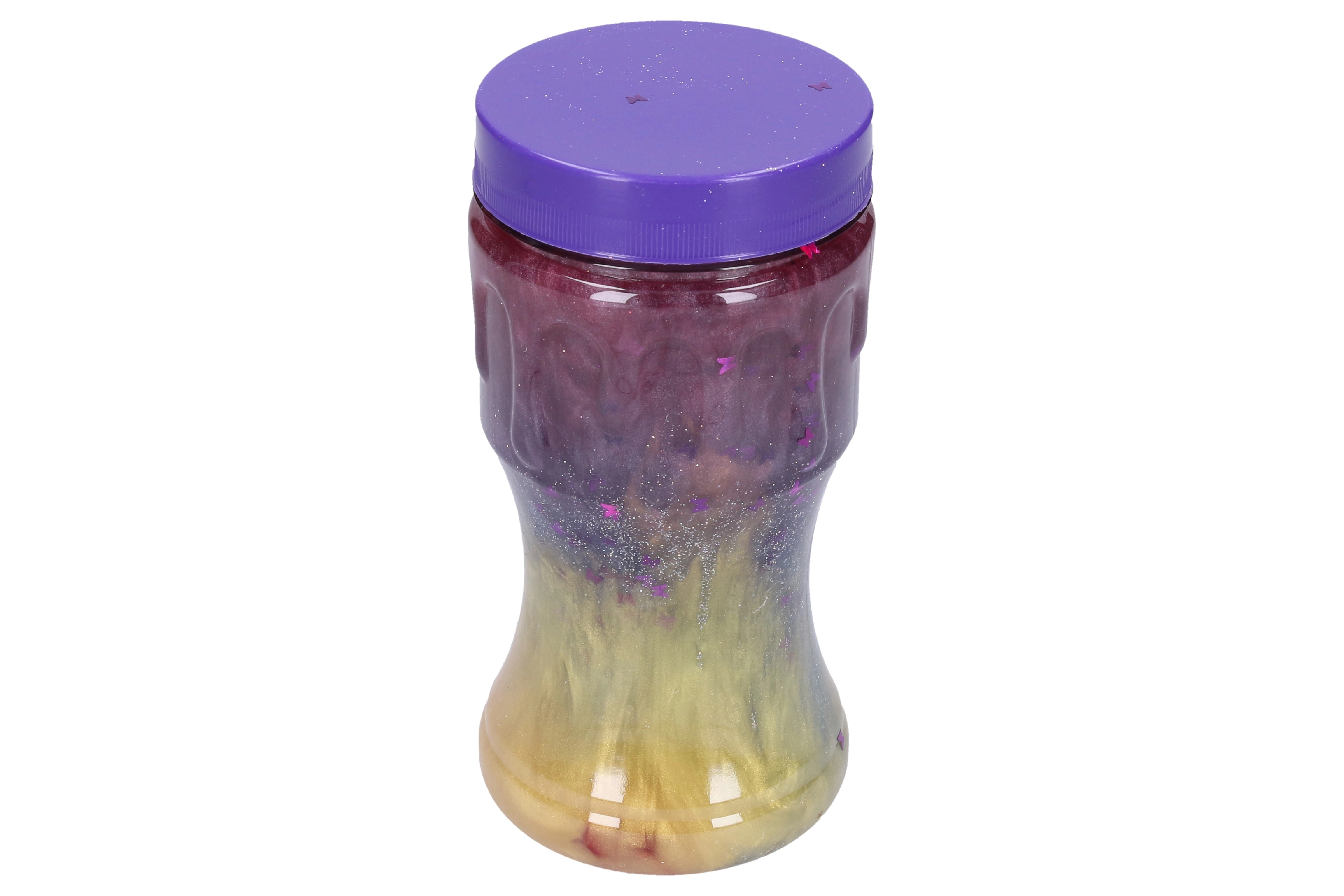 Remolinos multicolores con purpurina y estrellitas crean un espectáculo visual impresionante con cada movimiento del slime.