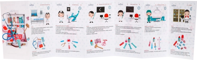 Además de las herramientas de juguete, el set incluye libros que enseñan a los niños sobre el cuerpo humano y el comportamiento durante una visita al médico, fomentando el juego educativo e interactivo.