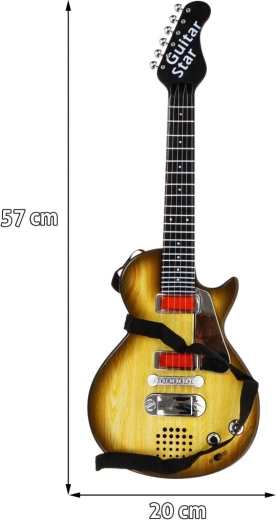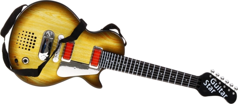 Esta elegante guitarra infantil con diseño que imita la madera es la elección ideal para pequeños músicos. Gracias a sus dimensiones compactas, se adapta perfectamente a niños desde 3 años y los motiva a explorar el ritmo y la creatividad musical. La guitarra está equipada con seis cuerdas metálicas que producen sonido al tocarlas y ofrece dos modos: reproducción de una base rock y toque libre de cuerdas.