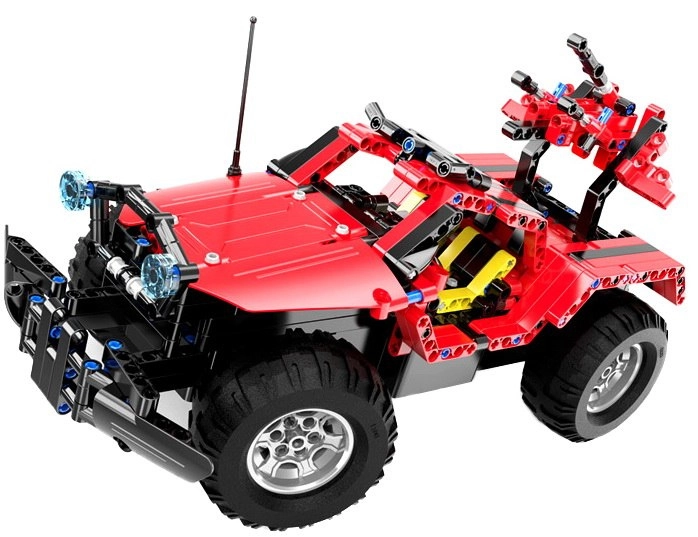 - Construcción 2en1: monta dos variantes distintas de coche todoterreno con un solo set.