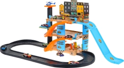 Esta gran y robusta torre de aparcamiento ofrece cuatro niveles llenos de diversión. En el nivel superior hay un helipuerto, mientras que hacia abajo conduce un divertido tobogán para los coches pequeños. En cada piso hay plazas de aparcamiento y en el segundo piso se encuentra una rampa hacia abajo. En la planta inferior encontrarás un lavadero de coches, una gasolinera y una plataforma de servicio móvil. Cada piso es accesible mediante un ascensor potente de control manual.