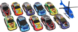 Incluye 10 cochecitos de diferentes colores y un helicóptero policial para aún más diversión.