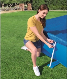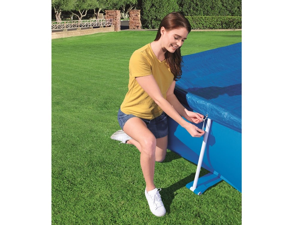 Gracias a las cuerdas, la cubierta se fija fácilmente a la piscina, lo que garantiza su estabilidad incluso en condiciones de viento.