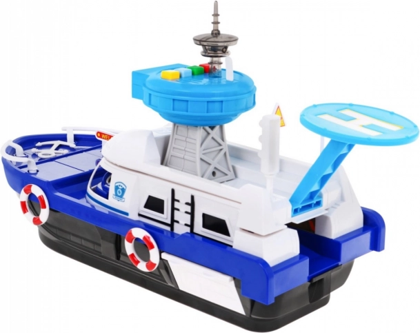 Únete a divertidas aventuras con la lancha policial interactiva diseñada para niños a partir de 3 años. Esta lancha cuenta con funciones de sonido y luz que aportan elementos de juego realistas. Gracias a la torre de control con helipuerto y al panel con alarmas sonoras y luminosas, brinda una experiencia inolvidable.