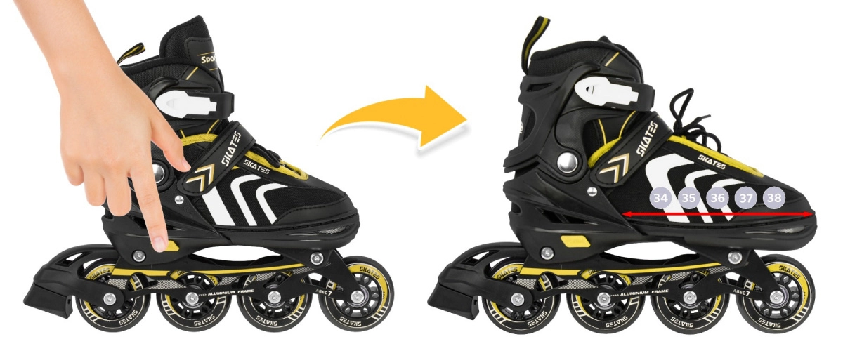 - 3 en 1 + accesorios – patines en línea, tipo quad y de hielo en un solo set, incluye protectores de cuchillas y llaves de montaje.