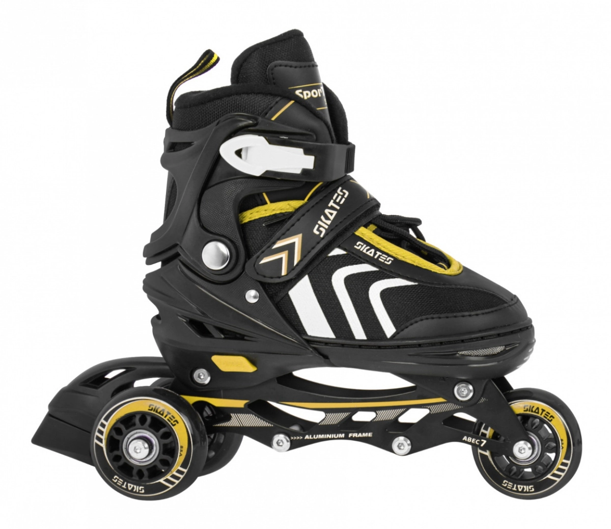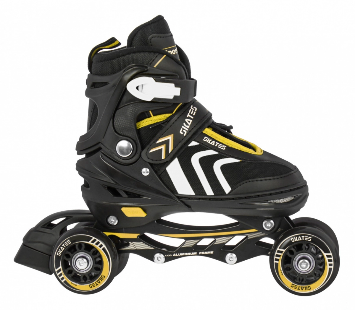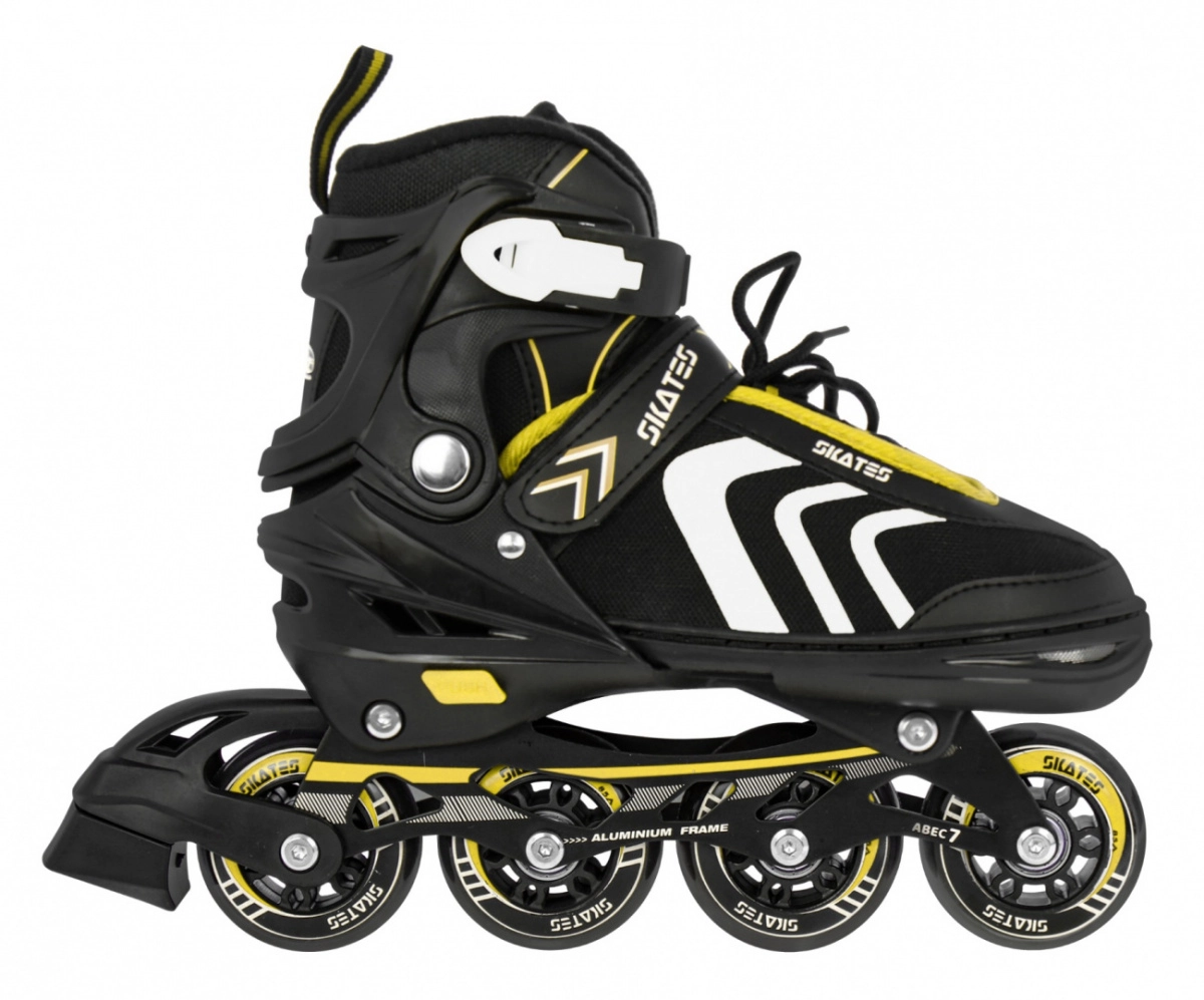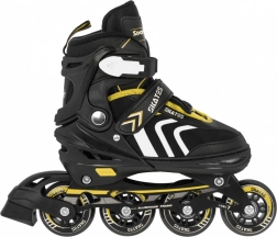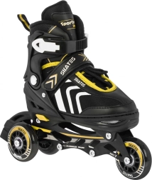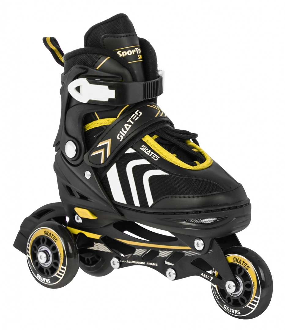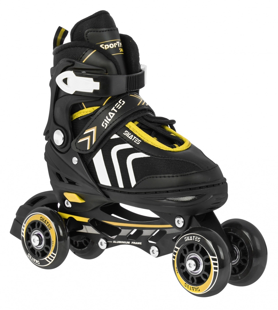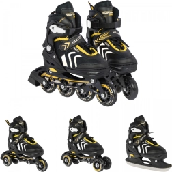Set infantil universal 4 en 1 para diversión todo el año: patines en línea, quads y patines de hielo en uno. Gracias al sistema de ajuste de cinco niveles, talla 39–43, crece con el niño. Bastidor de aluminio, rodamientos ABEC-7, ruedas de PU de 72 mm / 85A y cuchillas inoxidables garantizan un deslizamiento fluido y seguridad. La comodidad se refuerza con construcción semirrígida, ventilación y plantilla suave de EVA con material Velvet.