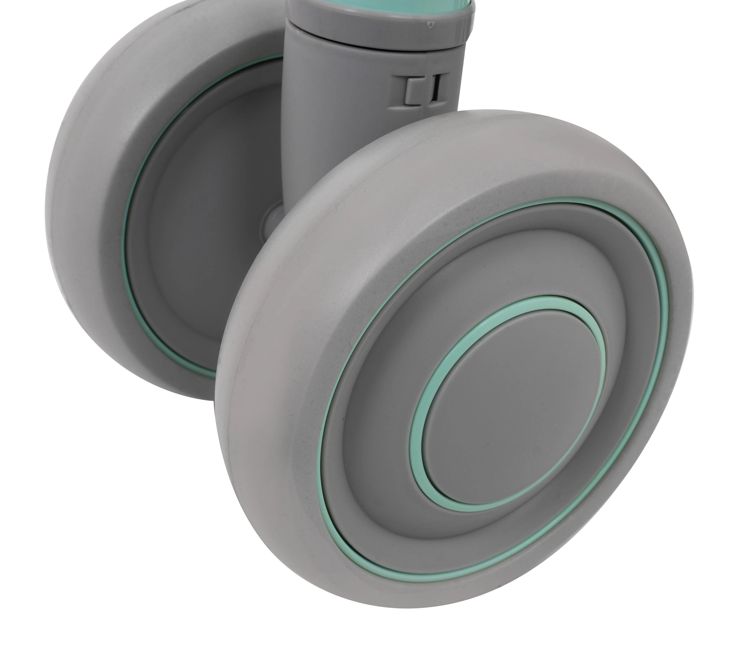 Las ruedas de espuma de calidad son silenciosas, ligeras y cuidadosas con el suelo, y la estructura sin bordes afilados aumenta la seguridad.