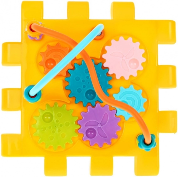 Incluye también clasificadores de formas y colores, un espejito para la percepción visual y una esfera de reloj para el primer contacto con el tiempo. Los niños practicarán agarrar, presionar, girar, deslizar y ensartar, lo que potencia las habilidades cognitivas y el pensamiento lógico.
