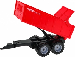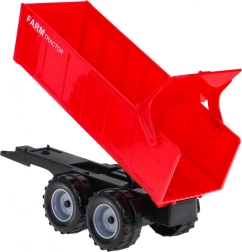 Remolque rojo con volcado manual que permite un transporte realista de la carga y una descarga divertida.