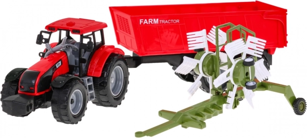 - Set de 3 piezas: tractor, remolque basculante, esparcidor de heno