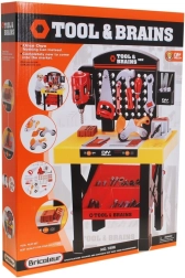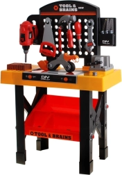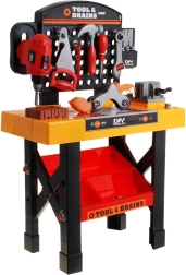 Esta magnífica mesa de herramientas es el sueño de cualquier pequeño mecánico. Con ella, el niño se sentirá como un verdadero reparador que dirige su propio rincón de taller. La mesa ofrece una amplia gama de herramientas, organizadas en un práctico soporte.