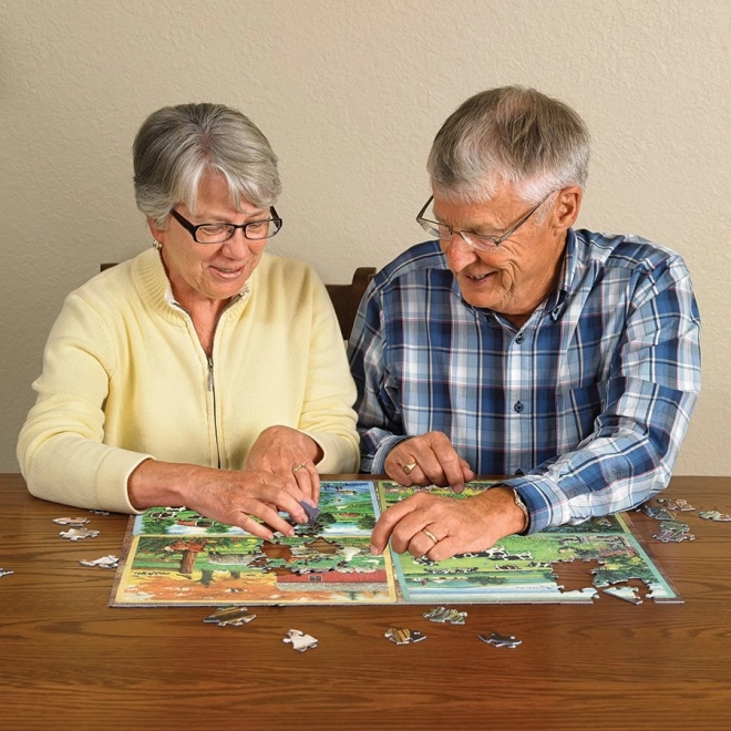 El rompecabezas COBBLE HILL “Amigos del campo” ofrece una escena campestre colorida y serena con animales y graneros rojos que entusiasmará a los amantes de la naturaleza. Las piezas extragrandes se sujetan con comodidad y contribuyen al entrenamiento de la motricidad fina y la percepción espacial.