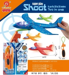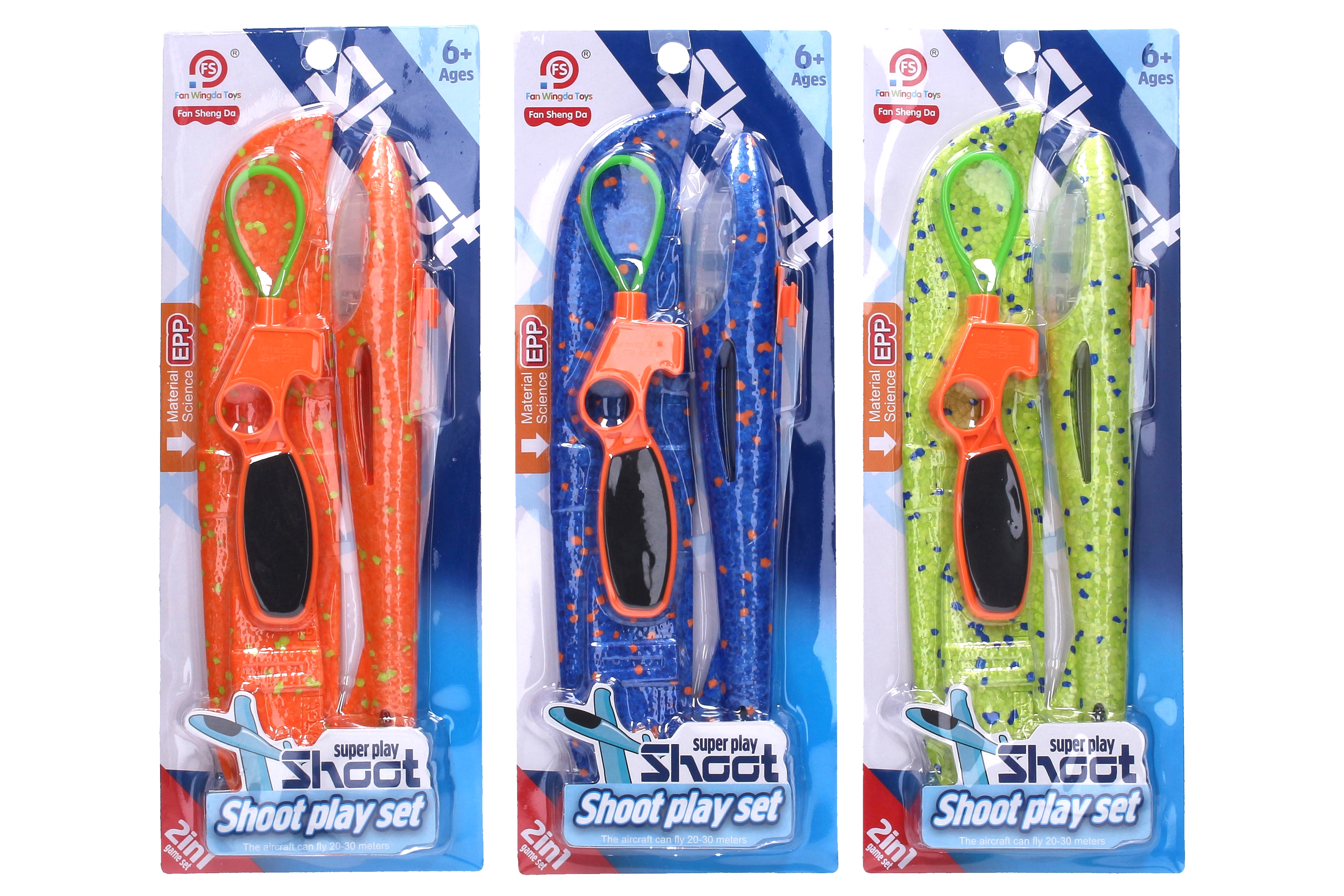 Divertido avión lanzador con efectos de luz que encantará a pilotos pequeños y grandes. Longitud 34 cm, 3× pilas AG3 incluidas y 4 variantes de color (azul, verde, naranja, rojo) para aún más diversión.
