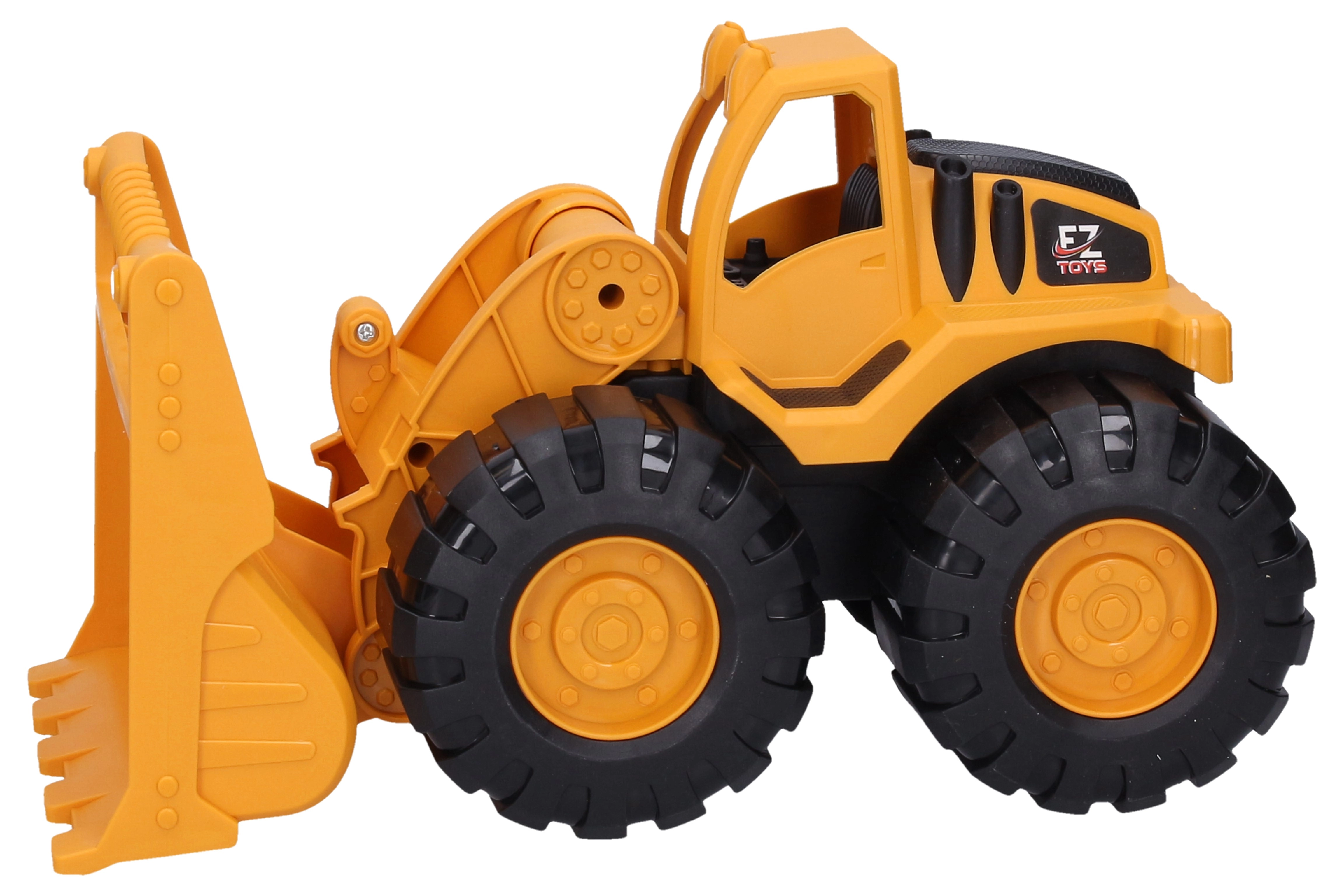 Divertido cargador de construcción infantil con motor de inercia en un práctico tamaño de 25 cm. Ideal para jugar en casa y en el jardín, dimensiones 25 × 14,5 × 15 cm.