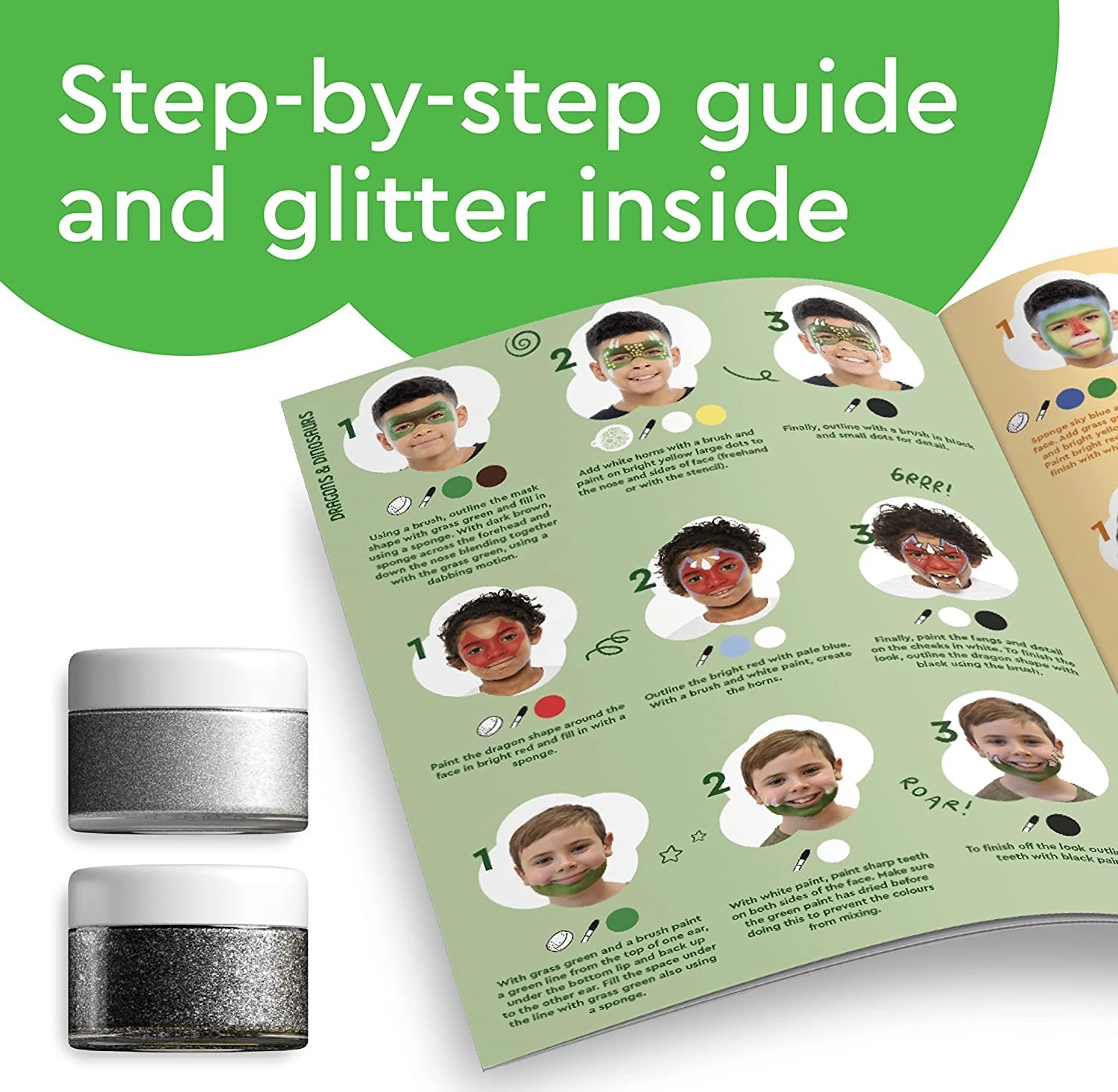 Crea en un momento piratas, hadas, animales y superhéroes. El set es ideal para padres, escuelas, campamentos y animadores: máxima diversión con el mínimo esfuerzo.
