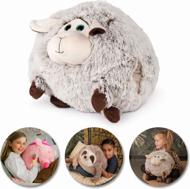 La adorable ovejita COZY NOXXIEZ es una almohada de peluche súper suave 3 en 1: funciona como almohada, manguito para calentar las manos y peluche abrazable. Gracias a dos aberturas laterales, calentarás las manos rápidamente y a los niños les encantará como escondite secreto. Ideal para viajar, para el coche y como decoración del dormitorio infantil.