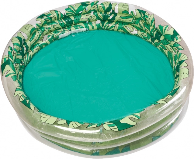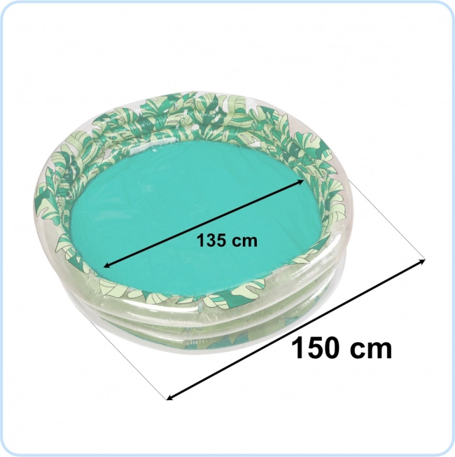 Esta hermosa piscina inflable con gráficos de hojas verdes será una preciosa decoración para tu jardín y un lugar para la diversión inolvidable de tu hijo. Gracias a sus dimensiones - diámetro 150 cm, diámetro interior 135 cm - es lo suficientemente espaciosa para varios niños.