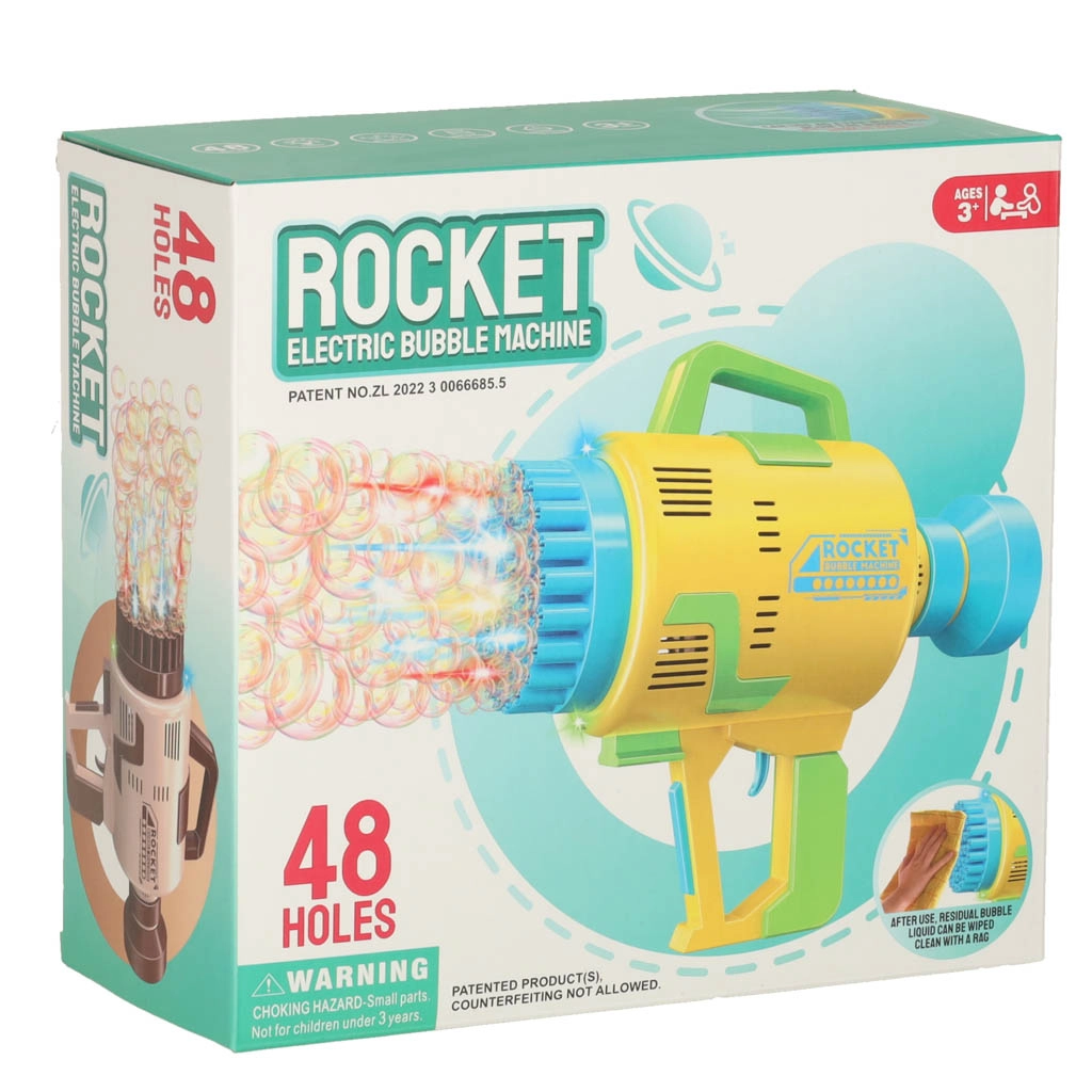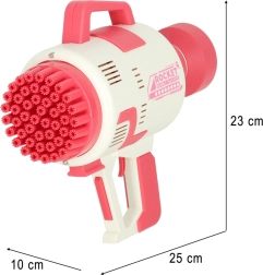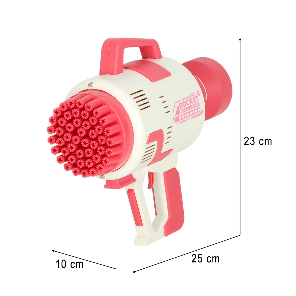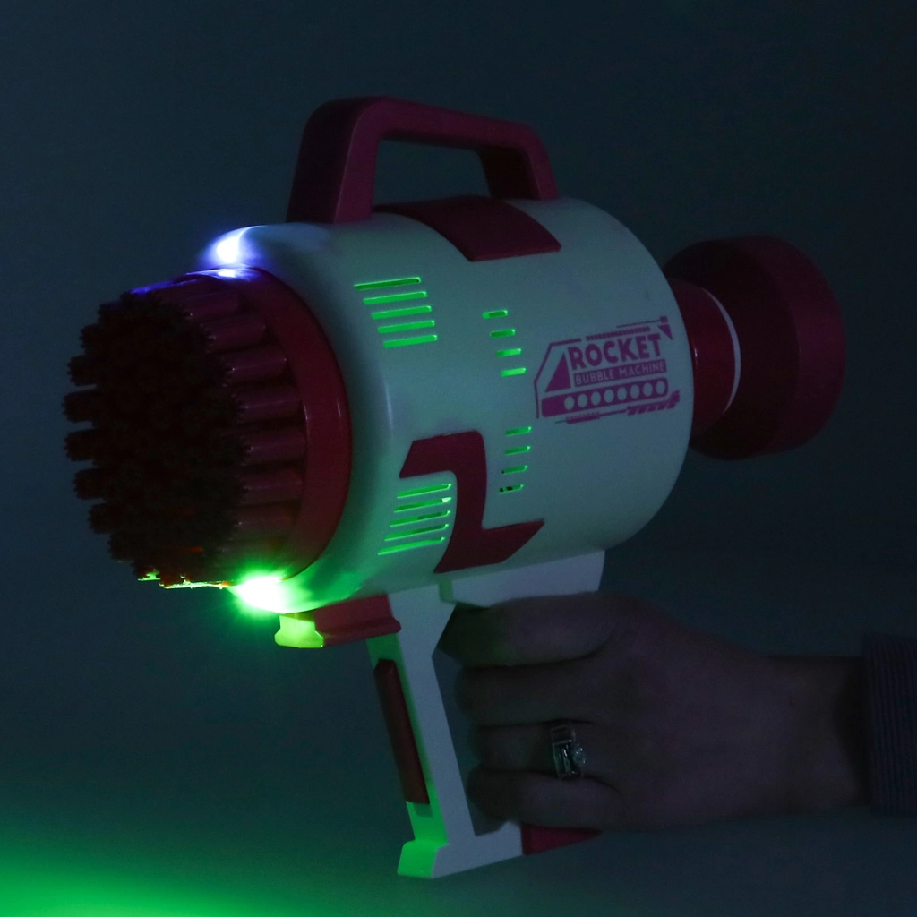 Disfruta con niños y adultos de un flujo interminable de burbujas. Este burbujero cohete rosa genera muchas burbujas con una sola pulsación del gatillo — sin soplar y sin esfuerzo. Su construcción de plástico resistente y el práctico asa superior facilitan el transporte y el juego tanto en exterior como en interior.