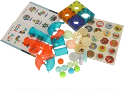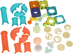 - 4× canica; 9× pieza luminosa; 16× cuadrado magnético; 20× piezas de varias formas; 20× pegatina