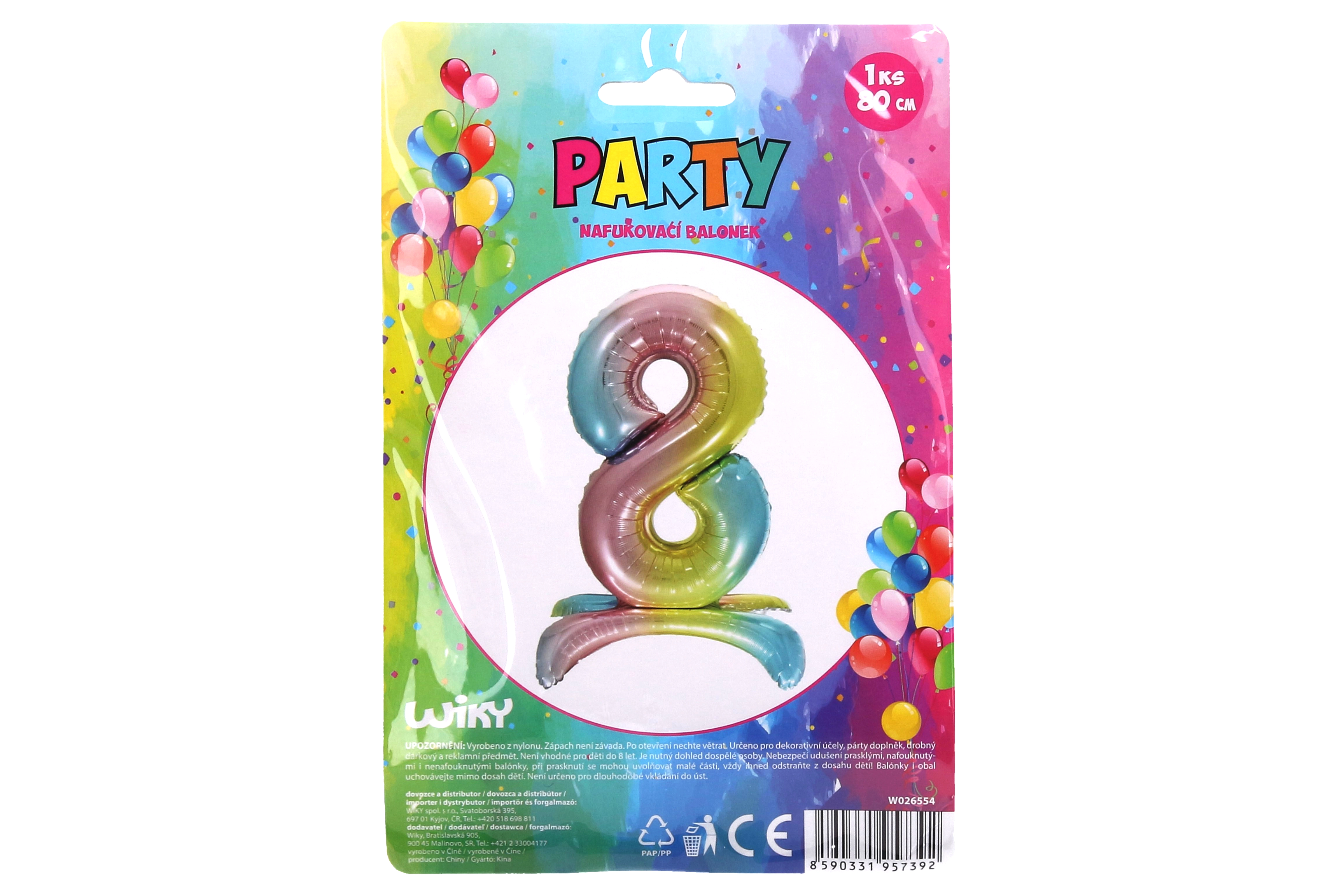 Dale vida a tu celebración con un toque de color. El globo de foil número 8 en versión arcoíris destaca por sus transiciones intensas de color y, al inflarlo, se convierte en un elemento dominante de la decoración. Ideal para cumpleaños con el ocho, aniversarios o para combinar con otros números.