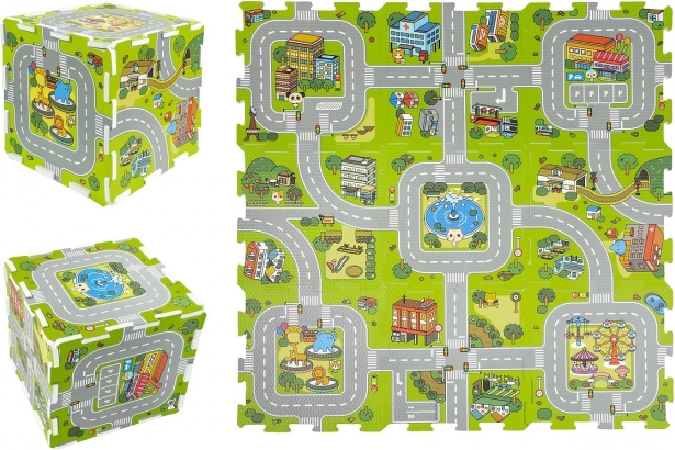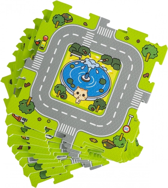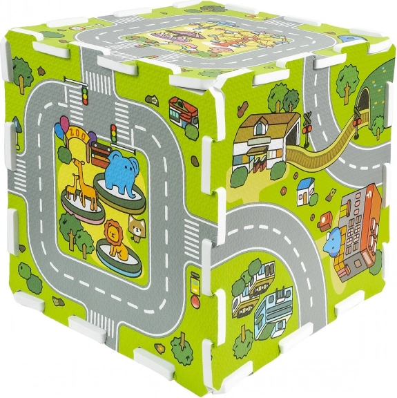 Esta versátil alfombra de espuma sirve como cómoda alfombrilla y como puzzle encajable con motivo de calles y edificios. Los niños pueden conducir cochecitos con seguridad, planificar rutas y, al mismo tiempo, practicar la motricidad fina y el pensamiento lógico. La impresión por un solo lado es clara y llamativa, la superficie es agradable al tacto y fácil de mantener.