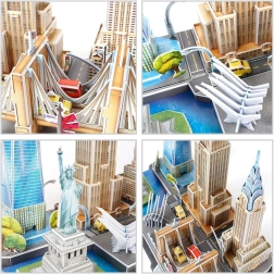 El rompecabezas 3D CityLine panorama Nueva York ofrece una combinación única de creatividad, relajación y diseño. Gracias a las piezas cortadas con precisión de espuma de aprox. 3 mm recubiertas con lámina impresa de calidad, el montaje es agradable e intuitivo, sin pegamento ni tijeras. El modelo terminado parece una miniatura realista de la ciudad, ideal para exhibir.