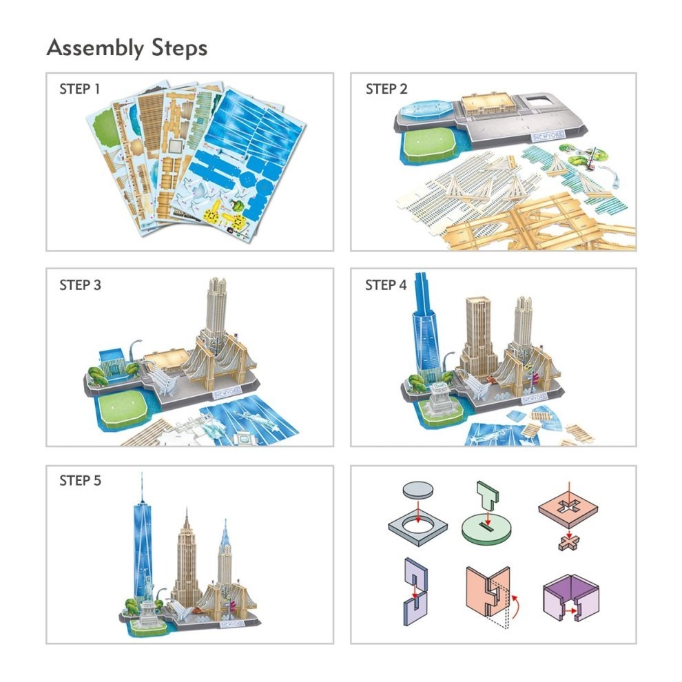 El conjunto incluye famosos emblemas de NUEVA YORK, como la Estatua de la Libertad, el Empire State Building, el One World Trade Center y sus puentes urbanos más conocidos. El tiempo de construcción estimado es de 150–180 minutos, por lo que es un gran proyecto familiar y un regalo perfecto para amantes de la arquitectura y el diseño.