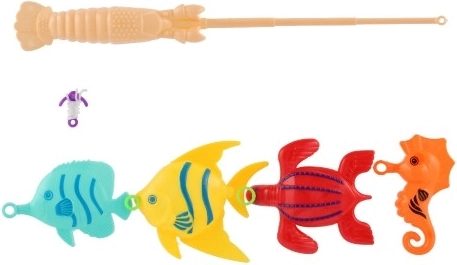 En el paquete encontrarás 4 pececitos de colores y una caña infantil con anzuelo. Gracias a su diseño ligero, incluso los más pequeños pueden manipularla con facilidad. El set es apto para jugar en la habitación y en el agua. Los colores de las piezas pueden variar.