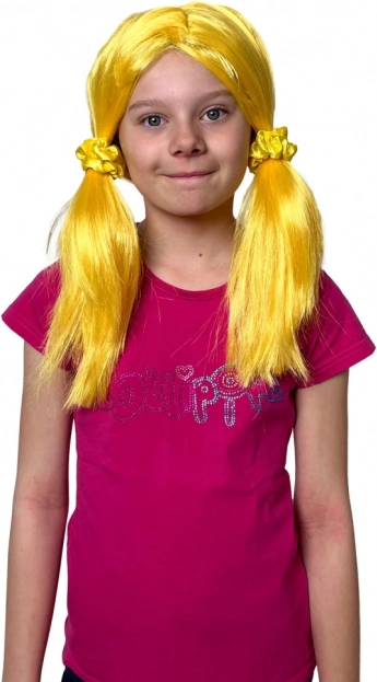 ¡Conviértete en una estrella como las queridas LOLLIPOPZ! La peluca amarilla con dos coletas añade energía y color a tu atuendo. Se coloca fácilmente y se mantiene bien, para que disfrutes de bailar, cantar y jugar sin preocupaciones.